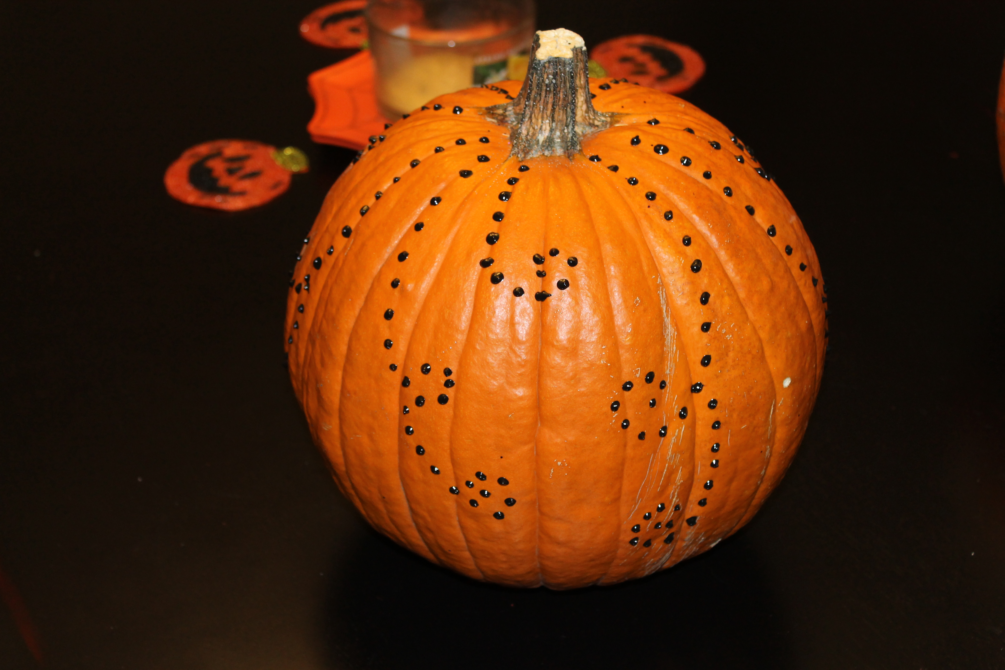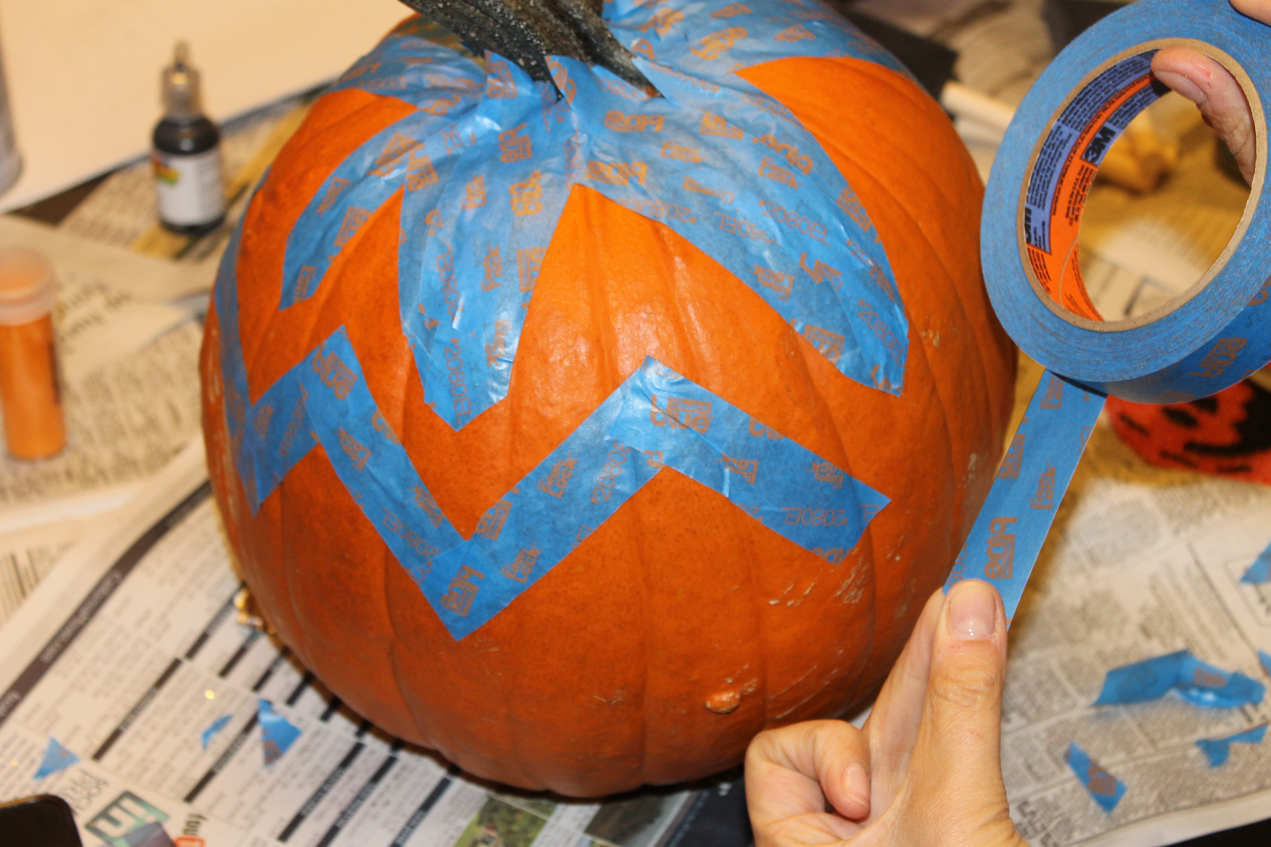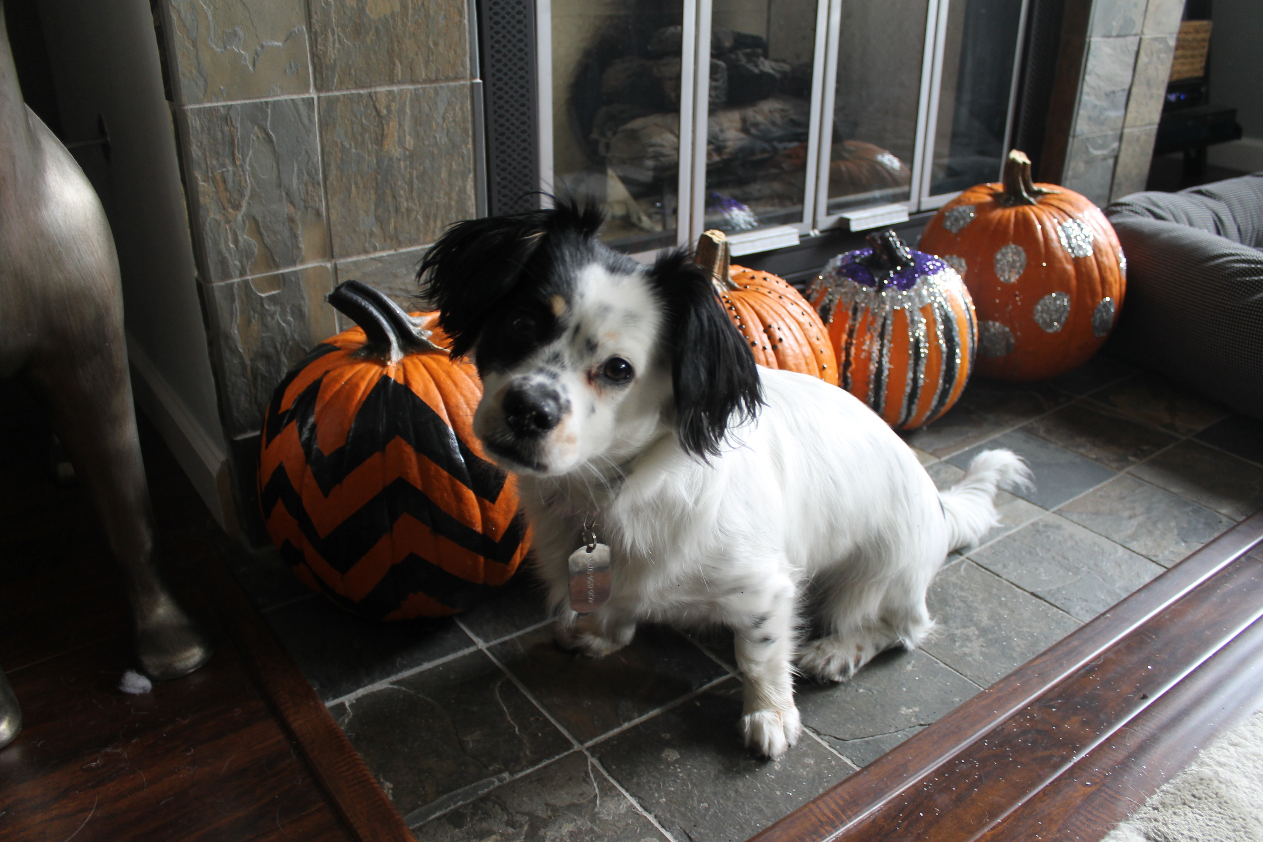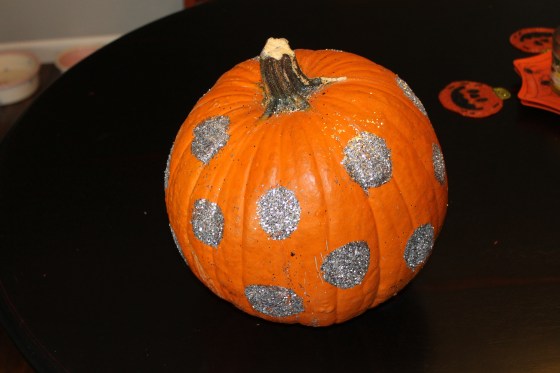 Who knew that bedazzling pumpkins would take hours!? I did not! Needless to say, after 5 hours of glitter everywhere- the pumpkins were complete. Every year I forget how much effort it takes to carve the pumpkin- here I thought I was getting away from it. Yeah Right! The Chevron print is all the rage right now- I would have preferred a white pumpkin with the chevron design, but I couldn’t find one big enough. I am probably the least craftiest person on the planet, so if you do have friends that are into arts and crafts, you should probably ask for their help. 🙂 Good luck if you try this at home!