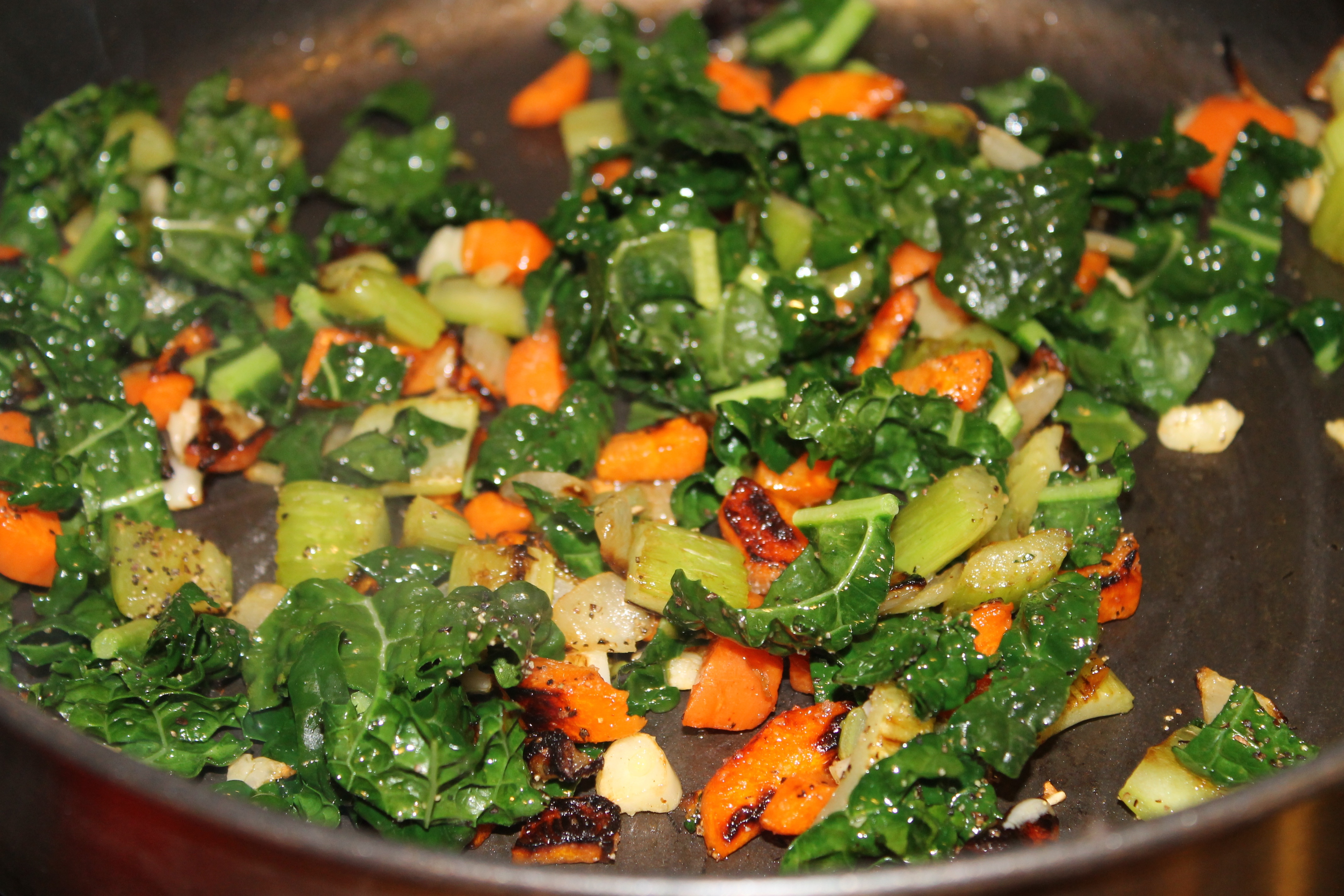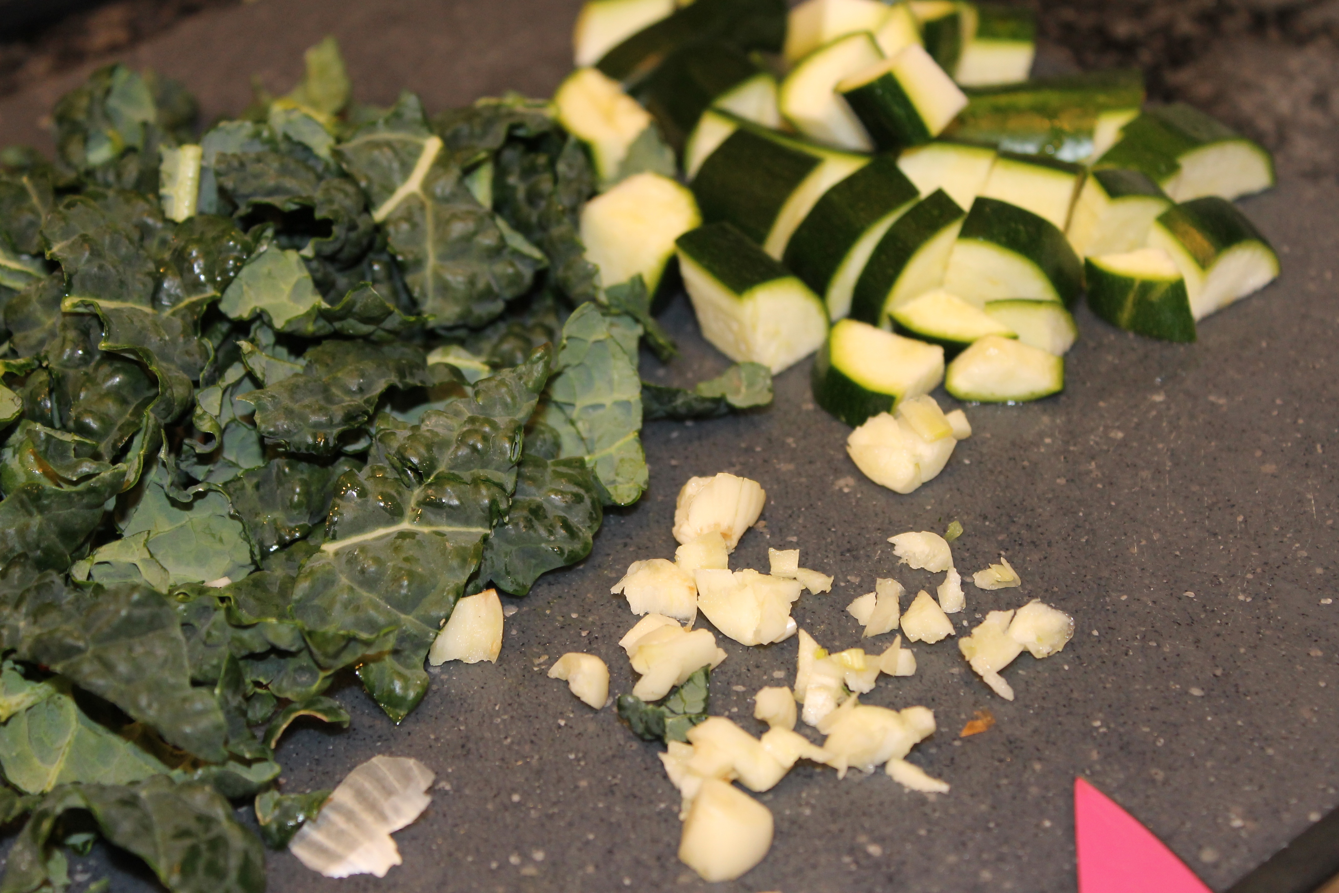 Start by boiling the beans on medium heat. They take about an hour or so, but when they are finished I saved the water and used the bean broth as my base broth for the soup (instead of veggie or chicken broth). In a separate pan – sauté the diced onions, carrots and celery with olive oil on low heat. When the veggies look cooked, you can add minced garlic and diced kale to to the mix. Sauté the kale until it is soft. You can add this mixture of veggies to the bean water or chicken stalk- whichever you decide to use. Add zucchini, diced tomato or tomato paste, a couple sprigs of fresh thyme, bay leaves, turmeric (optional) fresh chopped parsley, salt/pepper (go easy because you can always add later to taste when all the flavors blend). Let the soup simmer- my beans weren’t finished cooking all the way through so I let them finish with all the added ingredients mixed in. Another option is to boil the kale separately and then adding to the bean water. Either way, it gets soft and doesn’t really taste like kale (brilliant for those that don’t prefer it)!
