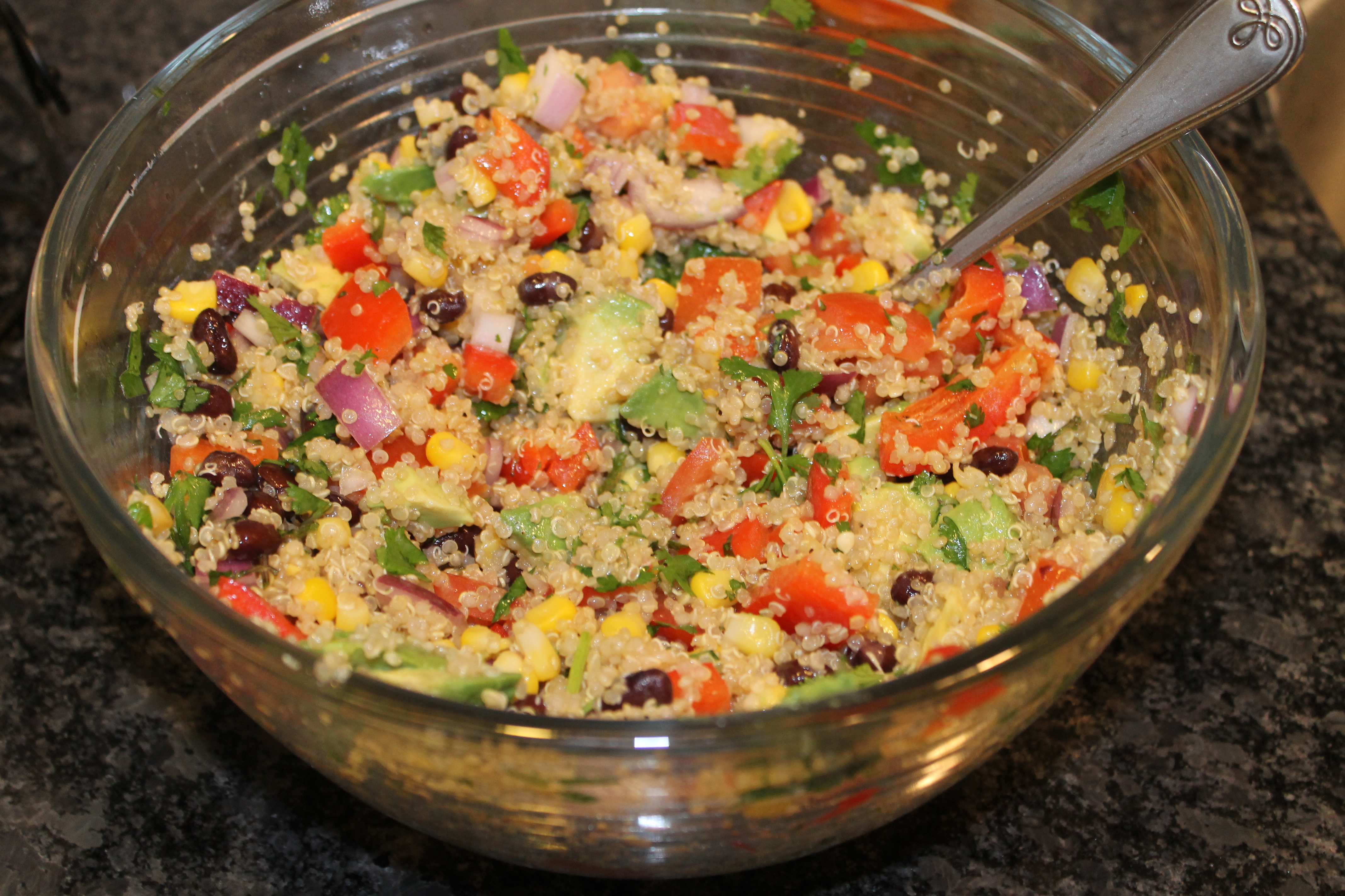 Remember this? I posted this on my blog page a couple of weeks ago. It’s one of my favorite, nutrient packed salads. Quinoa is a great rice or pasta substitute. You can eat alot and not feel extremely bloated afterwards. Sound familiar? You can choose any ingredients that you like or take any away that you dislike. Minimal time and it’s ready to serve in a matter of minutes.