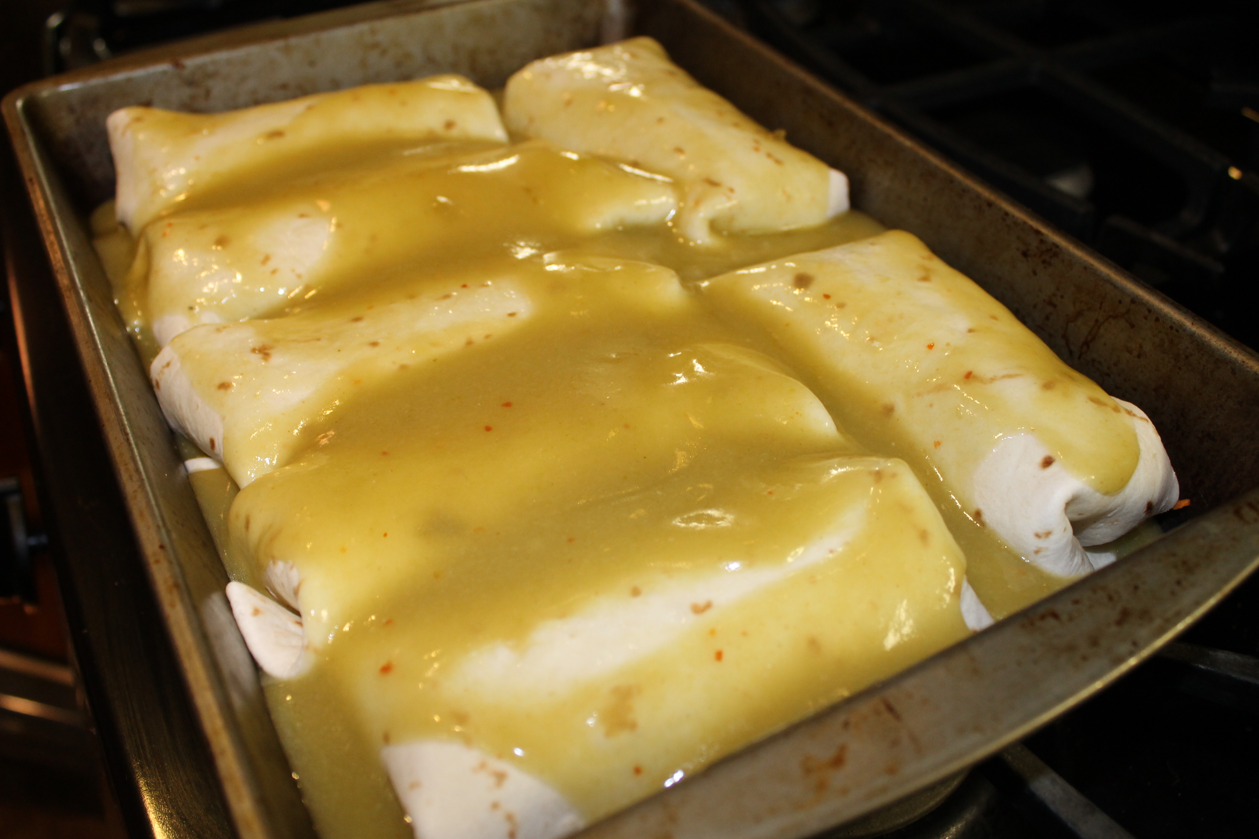 - 1/2 cups red enchilada sauce (I prefer green sauce)