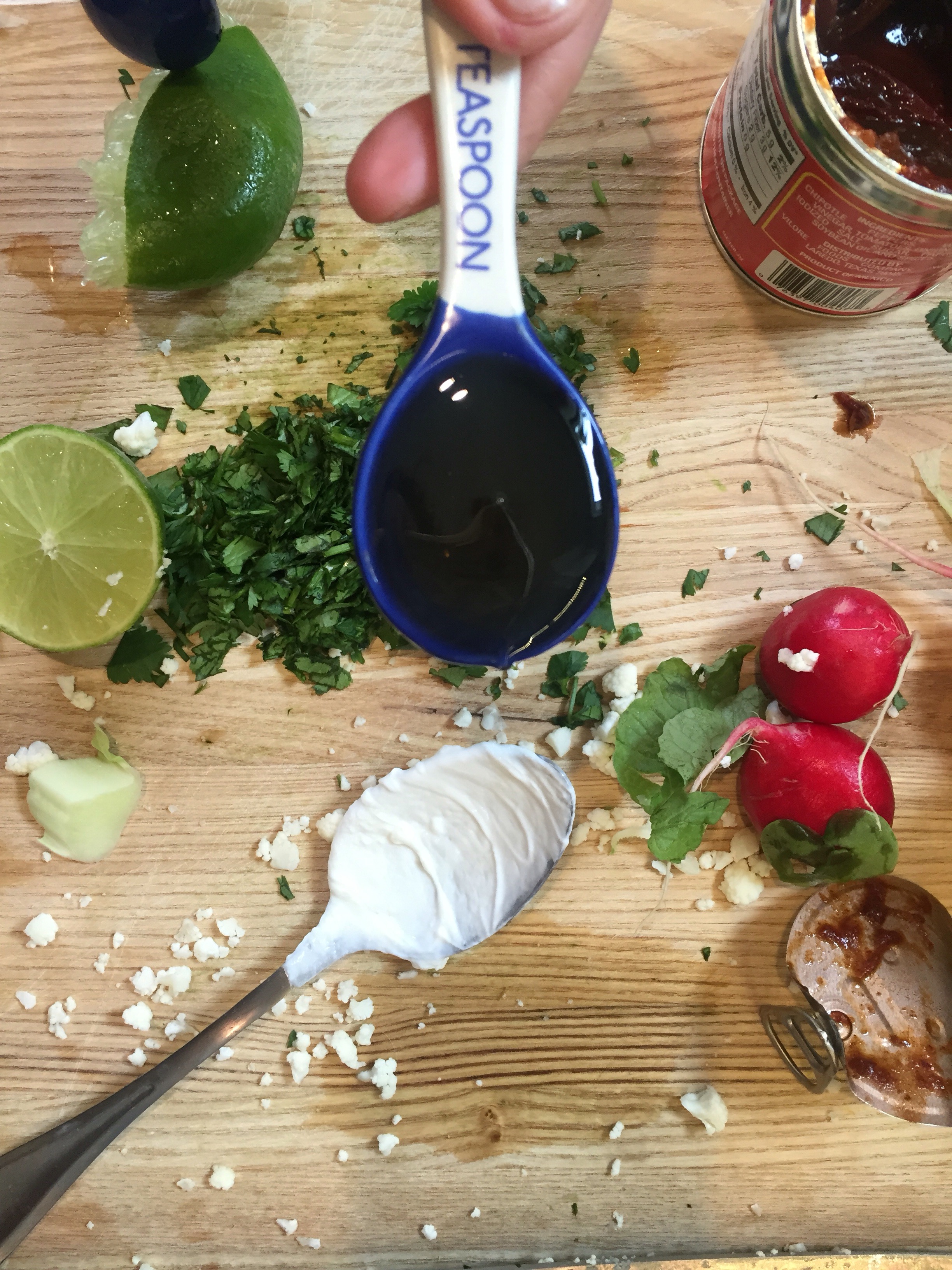 Make the chipotle yogurt sauce: In a small food processor [i used my vitamix] combine the yogurt, chipotle pepper, garlic, lime juice, olive oil, honey, and a pinch of salt. Blend until smooth. Taste and adjust the seasonings adding more salt, pepper, and lime juice as desired.